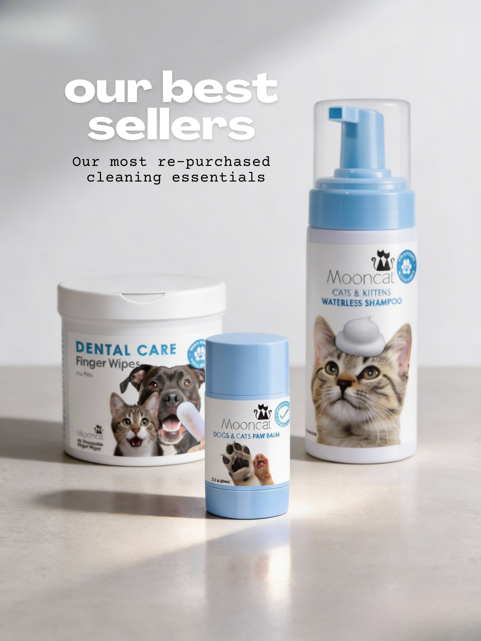 Mooncat® SnapBath Dry Cat Shampoo(5oz) & Brush — Mess‑Free Refresh