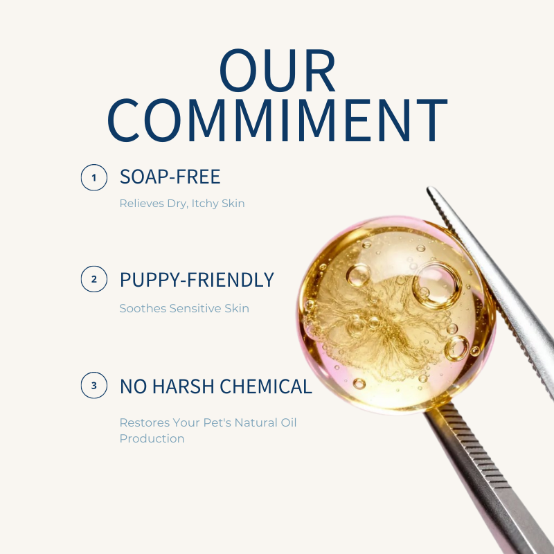 Our formula is also free from harmful sulfates, parabens, and additives commonly found in lower-quality pet products. This makes it perfect for dogs of all coat types, including those with allergies or sensitive skin.