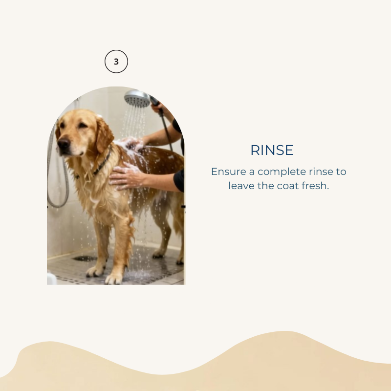 - Rinse thoroughly. Your dog's coat will be left hydrated, soft, and with a beautiful shine!