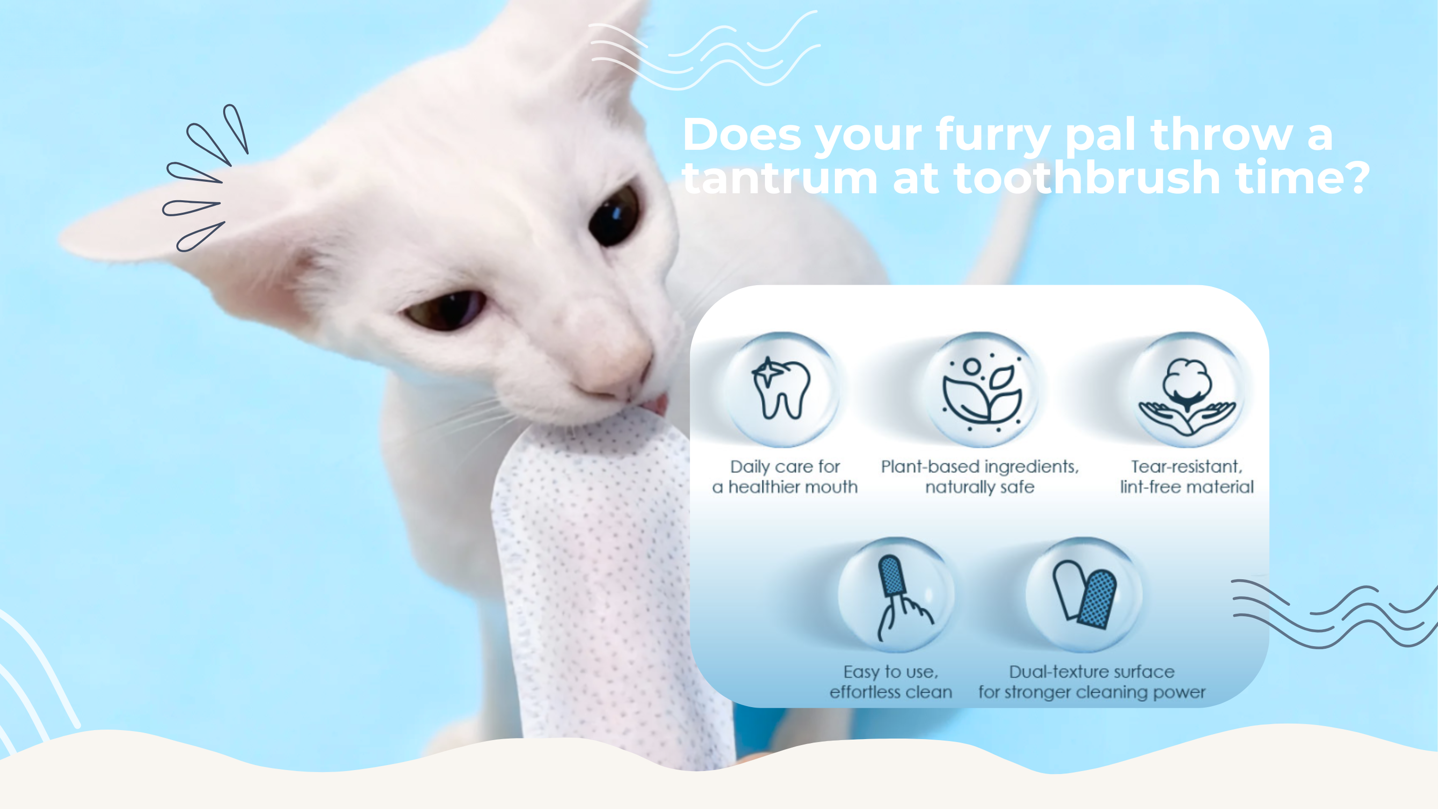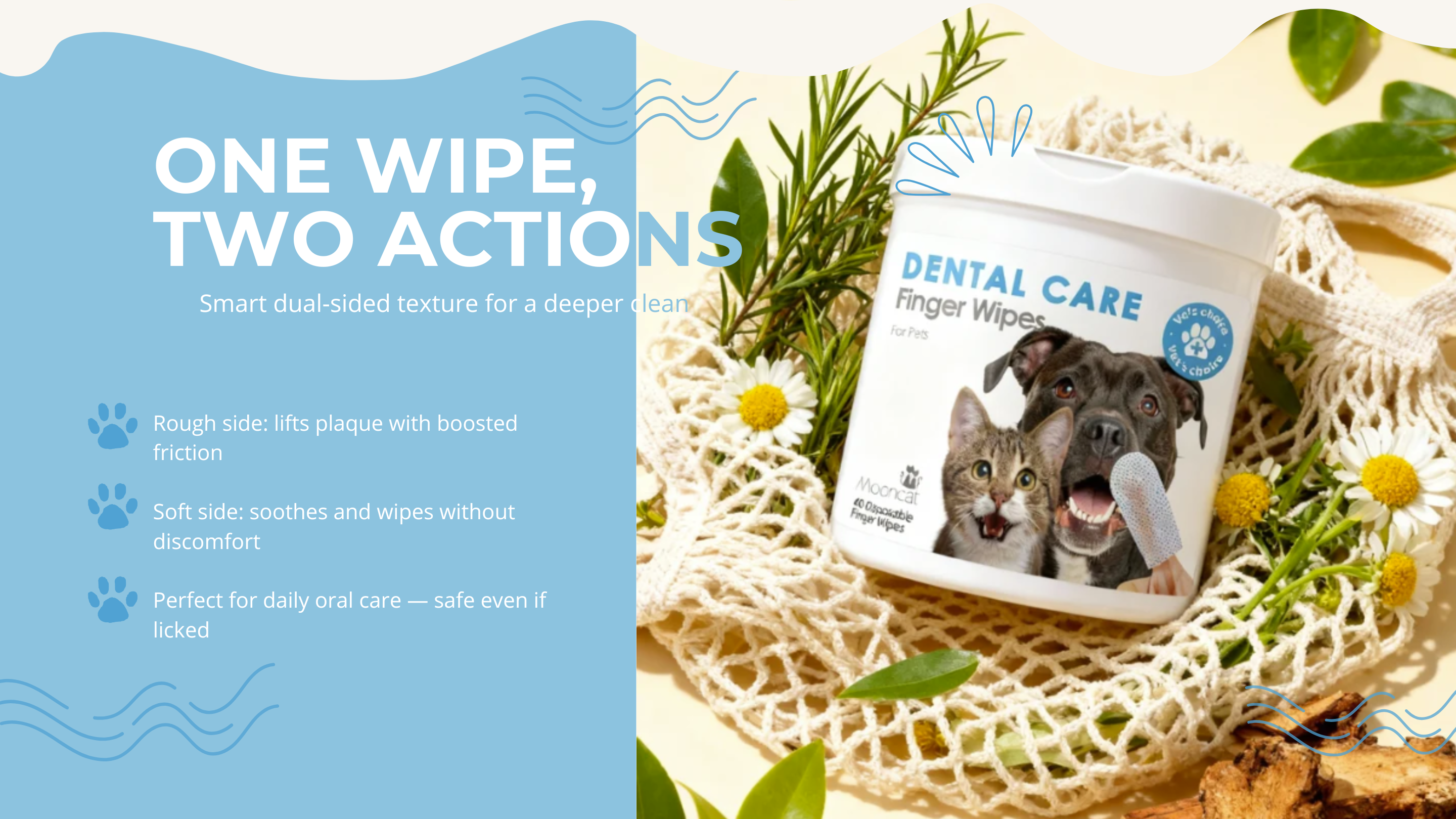Slip the wipe on your finger, gently rub teeth and gums in circular motions, use a fresh wipe for each side, and discard—no rinsing needed.